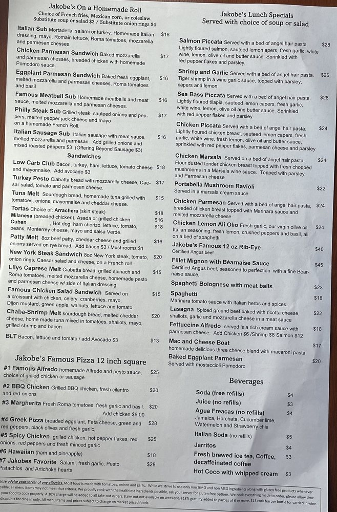 With consistent praises from customers about the warm atmosphere and attentive service, Jakobe's stands out as a cozy spot to enjoy quality meals with friends and family. Don't miss out on experiencing their remarkable offerings!